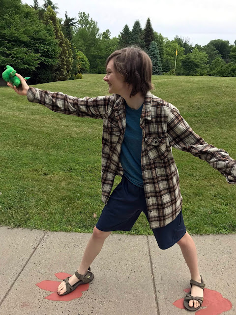 Nim's souvenir was a little tiny pterodon, which she then had to take for a little hike through the woods. Apparently one does not outgrow these things :)