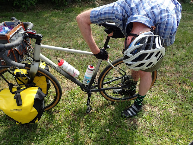 Chad adjusted his light during snack time. This is one of the mere three mechanical adjustments needed over the whole trip (not counting the three flats).
