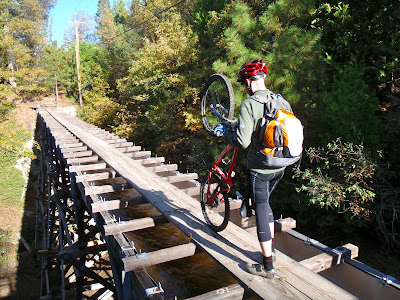 Ma November 23, 2010 #adventure #bikeDespite the tenor of the previous post, most of our anniversary weekend was quite enjoyable, and full of mountain bike exploration. By far, the most interesting route was following an obscure trail out of Columbia that ran along side, or in some cases on, the Tuolumne Flume, then along an old rail grade, then on a series of little-known dirt roads heading north from Lyons Reservoir.