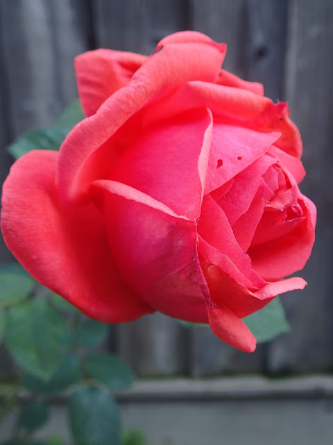 Most self-respecting roses don't deign to do anything when it is 38 degrees in the morning; this one is an exception. I kinda sorta forgot to prune the roses back this year.