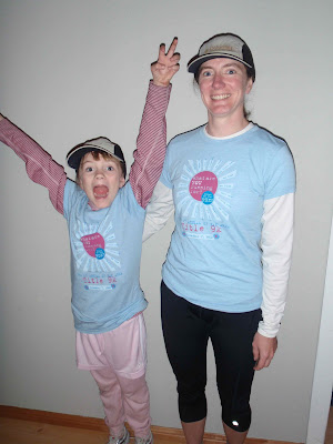 Finally, it was 9:00, and we were off! After the usual disorganization of a bunch start, we found an open patch and Nim settled into a nice steady pace. Even though we had planned on a strategy of half mile run/1 minute walk repetitions, she decided in the heat of the moment that she wanted to run straight through, only stopping briefly at the aid stations drink and snack. Crazy determined kid did it, too!