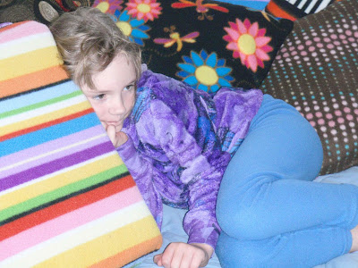 The excellent tired kid is now splatted in the TV room watching cartoons.