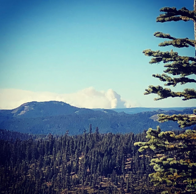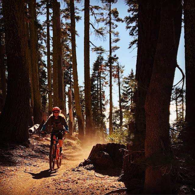 Chad and I explored some relatively new-to-bikes pieces of trail up towards the Lakes Basin. While one could see the smoke off in the distance