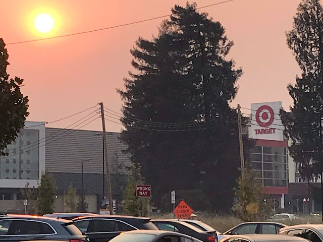 Remember those pictures of the Central Valley earlier? That's what it looks like when the Air Quality Index is 181...which it is right here, right now. Last week, this set off the smoke alarms at the school; this morning some of the staff wanted to cancel school (as several colleges around here have), but the district wouldn't let them. The kiddo went off to class muttering about the air being filled with tiny white particles. If we are lucky, there will be a shift in the weather next week.