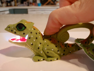 2. Nimue presented me with a lizard flashlight. If you press on its back, its mouth will open and shine light. Monster Ma has a new familiar. (insert cackle here)