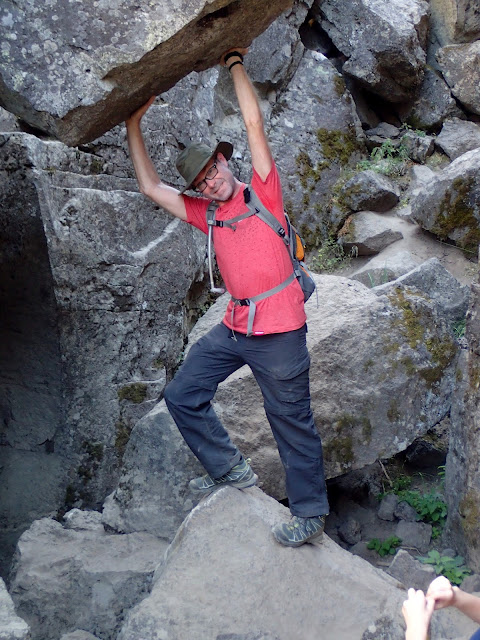 a miles-long series of parallel cracks in the basalt that one can climb in and out of to explore. So much fun, and incidentally quite a bit cooler than on the surface!