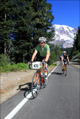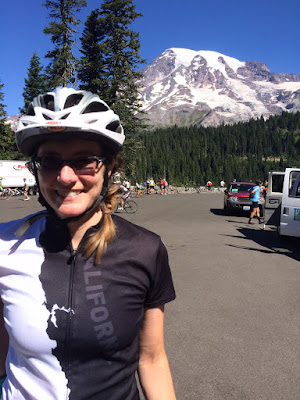 We did the big ride around Mt. Rainier. You will note 148 miles. With big hills. It was actually a well-supported, lovely ride, aside from the last 30 or so miles into a hot headwind at the end. I might have counted the last big climb in the near-hundred-degree heat as a sufferfest too, but for the tube sock full of ice given to me to stuff down the back of my jersey halfway up. Sheer brilliance.