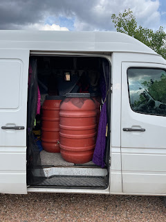 BikeBoy May 27, 2023We can (easily) fit three (3) 60-gal rain barrels in the van! (Many more if we didn’t have a bed and other stuff in there…) Our friends Bob and Kim are moving, and gifted us a bunch of barrels they couldn’t take with them. We almost bought these last week, so the timing was perfect!