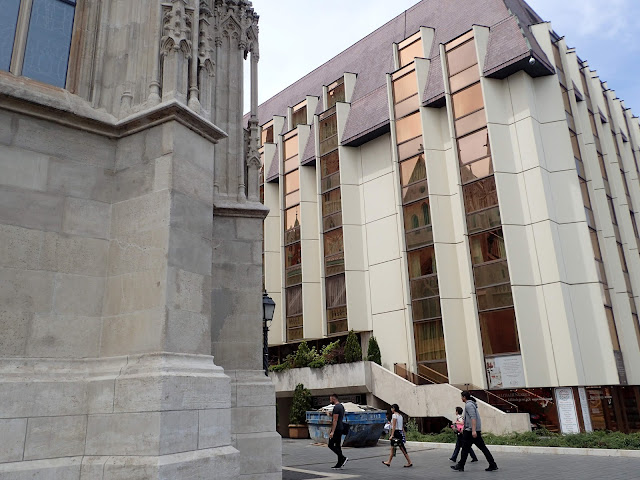 Matyas Church, Castle District, Budapest, in neighboring building. The juxtaposition of the old and new is often vaguely amusing.