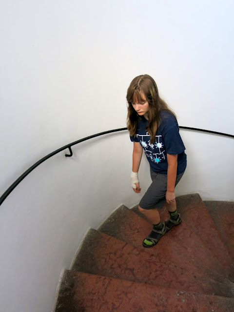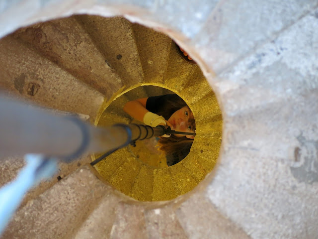 go up and up and up the next smaller spiral staircase, getting dizzy in the process,