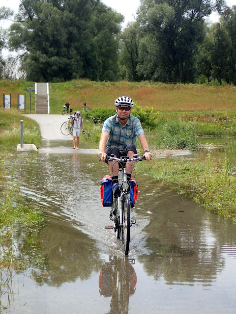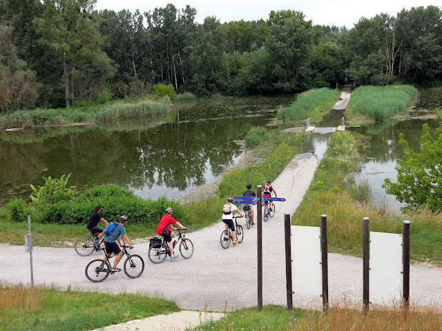 By and large, we followed the Eurovelo 6 route from Vienna to Budapest. Along this stretch it is a mixture of bike path and roads that roughly follow the Danube River. Here's a taste of the route: