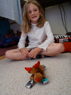 Ma June 10, 2009 #kiddo #craftI came back from my bike ride on Saturday to find that Nimue had invented RollerReindeer with a stuffie, clear packing tape, and some cars. (Photos compliments of Chad, who watched her in the afternoon while I rode -- I did the same for him in the morning.)