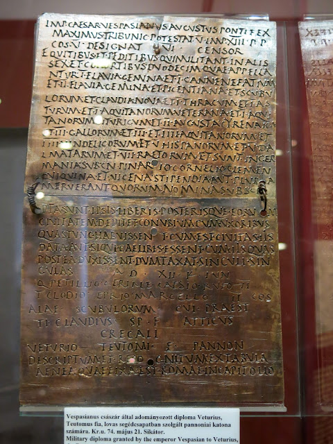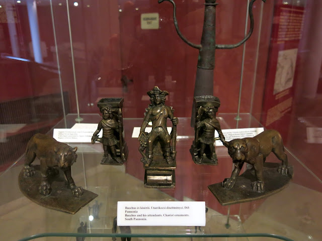 I would have liked to go to the site at Aquincum (the capital of Lower Pannonia, near Budapest), but by the time we made it back to Budapest, we had been riding outside in the 95 degree humid heat for days, and somehow a nice air-conditioned museum seemed more appealing than an outdoor site, so we contented ourselves looking at the artifacts in the Hungarian National Museum instead. A large part of the lower floor of the museum was dedicated to Roman artifacts found in the area. (This museum gave us the added benefit of seeing regional stuff from later periods of history too.)