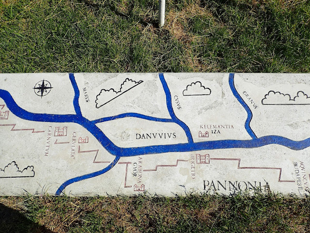 Trailside map of Pannonia showing route from Vienna (on far left) to Budapest (Aquincum) on right, along the Danube.