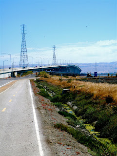 Ma July 15, 2009A couple of days ago, I had a few hours free to take a long-ish ride and uncharacteristically didn't feel like doing any hills. I have, however, an endless store of odd notions about where it might be entertaining to ride stored in the back of my mind, and this time the time seemed ripe to check out the bike lane across the Dumbarton Bridge.