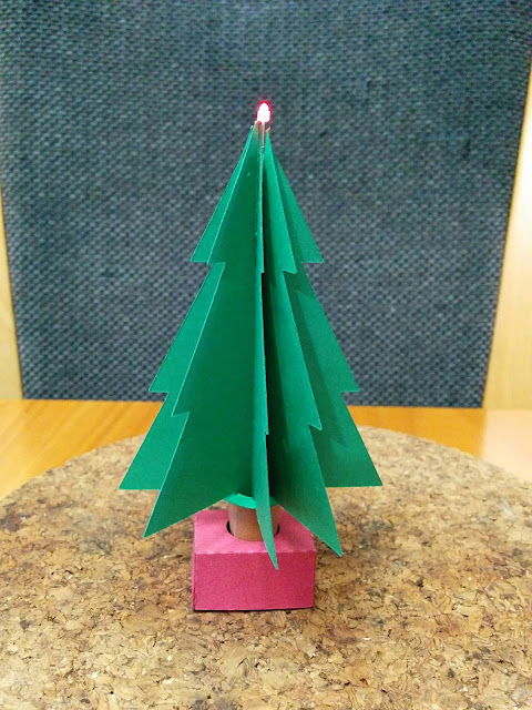 Low-tech Christmas crafts (though this one does have a teeny-tiny LED on top connected to a battery in the base with a thin line of conductive ink).
