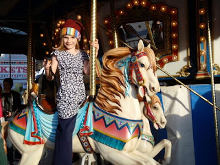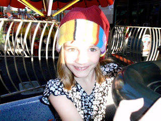 As a reward for being good when dragged to the holiday lunch at the museum Friday afternoon, I took Nimue over to San Jose's [Christmas in the Park](http://www.christmasinthepark.com/) installation. She dutifully ran around admiring all the Christmas trees -- even took notes on all the kinds of ornaments she wants to make for our tree -- and then I bought her a ticket for the merry-go-round. Of course, then she started looking wistfully at all the other rides, and somehow I found myself getting on a brightly colored spinning rotating up-and-down flying balloon thingie with her. I haven't been on one of those for probably at least 10 years. We laughed maniacally, spun faster than anyone else, and stumbled off dizzily, cracking up even the dour jaded ride operator. However, to my chagrin, I realized my stomach is not quite as resistant to motion-induced queasiness as it used to be -- particularly not after having first a fine holiday potluck lunch in Nimue's classroom followed by too much addictive artichoke dip at the museum's Christmas lunch.