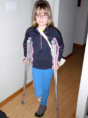 Nimue sprained her foot yesterday at recess. The incident somehow involved a game of tag, a hole in the grass, and a multi-kid pileup. She's been remarkably cheery about the whole thing, despite not being able to walk on it. We're all hoping it heals up at least partially before we head out to Joshua Tree for spring break on Saturday!