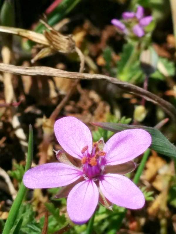 I was impressed that the microscope app on my phone took decent pictures of teeny-tiny flowers. This filaree blossom was less than 1/4 inch across,