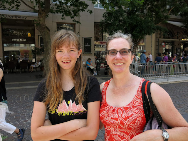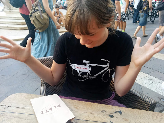 Occasionally the smiley face comes out in a shot of all three of us. "I got ice cream and I love my parents."