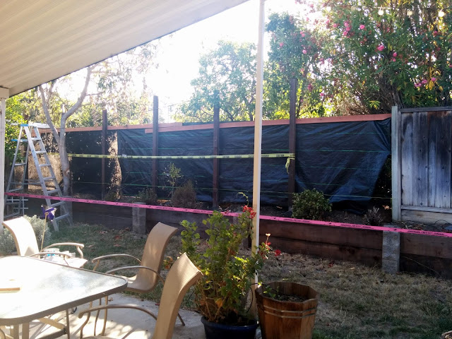 It was a bit odd when the plastic came down at 7:30 in the morning while we were still eating breakfast, but I decided it was just entertainment. We call that back window the "kitty TV", and there was definitely out-of-the-ordinary programming on kitty TV for about a week and a half.