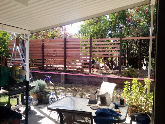 After a full week of near-constant jackhammering to remove all that patio concrete, the fence came down, giving me an up close and personal view of the project.
