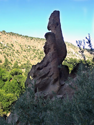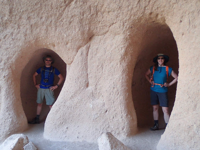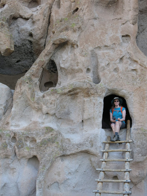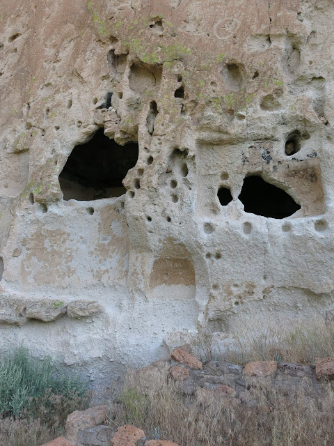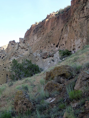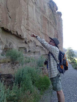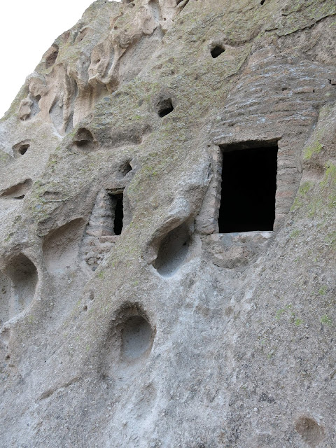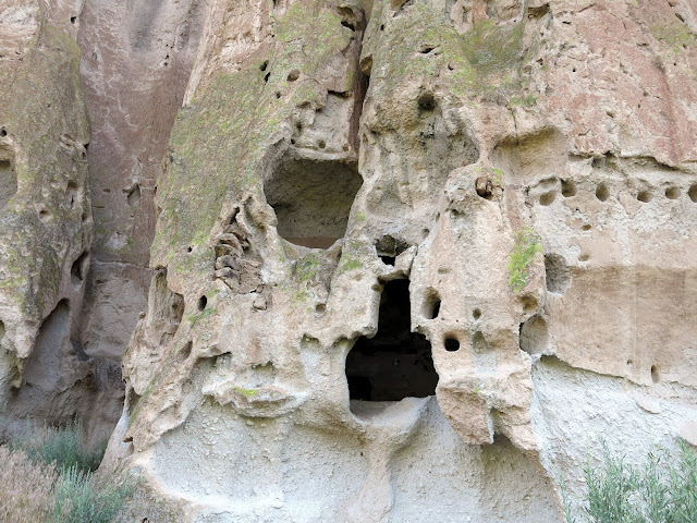As we approached the cliff on the edge of the broad canyon, we admired the interesting nooks and crannies and shapes created by the uneven erosion of the volcanic tuff in this area.