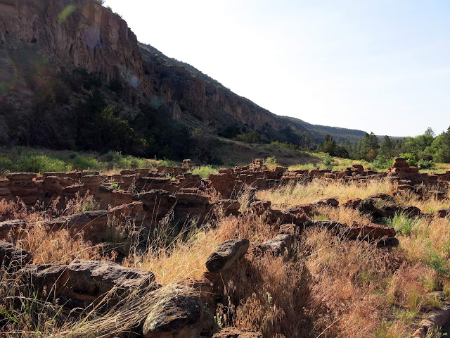 Ma September 21, 2019 #vacation #hike #familyThere is no shortage of outdoor recreation around Santa Fe, even if one self-limits the activities to just hiking. Our destination for the day: Bandelier National Monument. Bandelier is chock full of Ancestral Puebloan dwellings, kivas, and petroglyphs, and only about an hour out of town, so is a pretty popular place for tourists to visit in the summer.