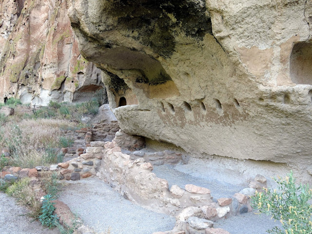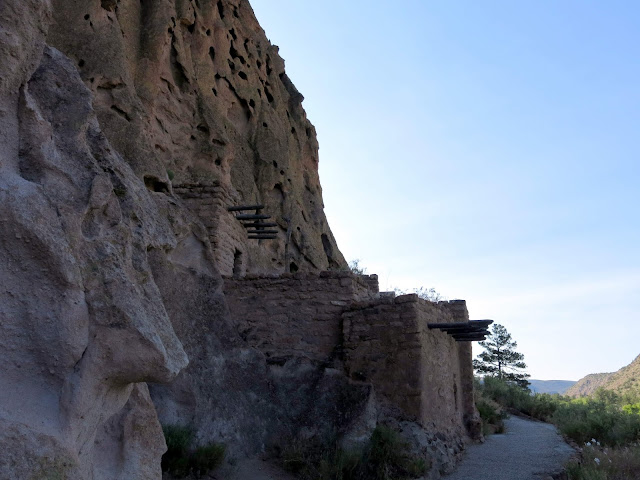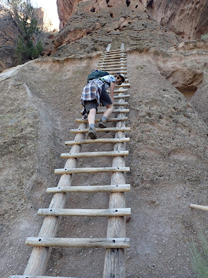 The Ancestral Puebloans, clever people that they were, took full advantage of the characteristic erosion patterns in the cliffs in the engineering of their dwellings and storage spaces. The park service has placed some ladders so people can investigate some of the spaces. I also noticed many places where there were faint hand/footholds chipped into the rock, indicating that ladders historically weren't the only way up.