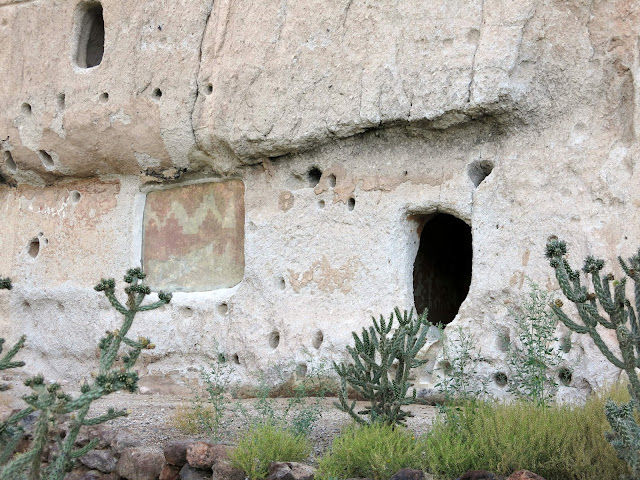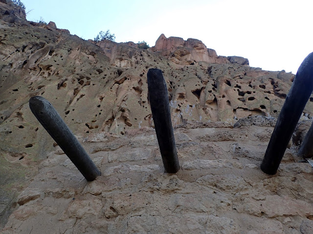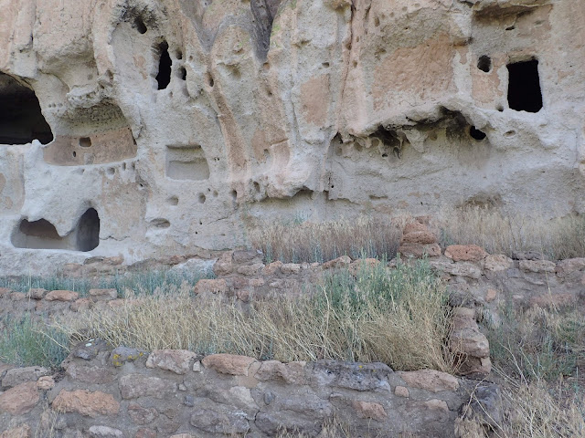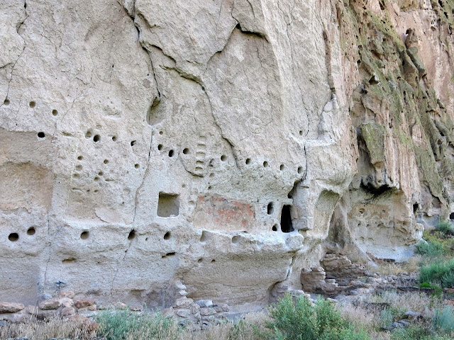 The dwellings built into the cliff were clearly complicated multi-story affairs, es evidenced by linear patterns of chipped-out holes in the rock, remnant logs, and walls. The communities here were large, once upon a time.