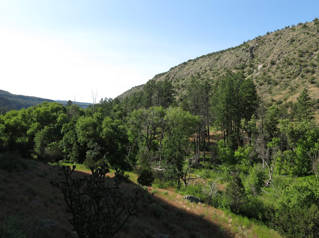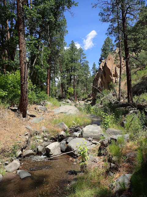 The trail in this direction follows El Rito de los Frojoles, which cracked us up when we realized it translates to "The Little River of Beans". Somehow, we just couldn't stop saying "The Little River of Beans" in response to just about anything. It might have been hunger speaking; we found a nice picnic spot and ate our sandwiches.