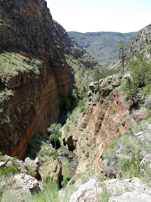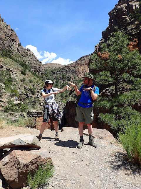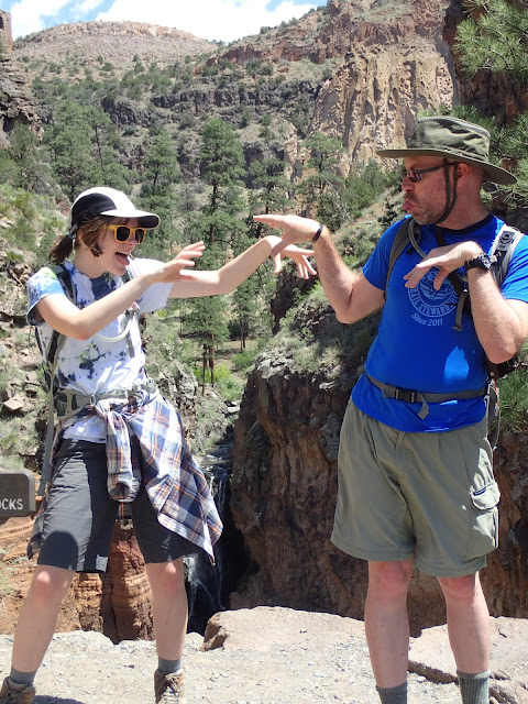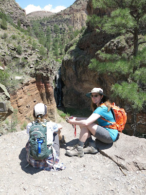 Eventually the drainage narrowed and steepened, eventually stopping at a waterfall viewpoint. The trail used to continue down to another waterfall and then all the way down to the Rio Grande, but that part is now washed out, so we had to stop at the first waterfall.