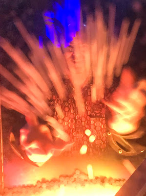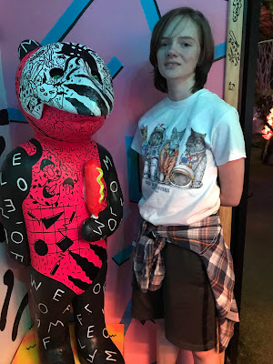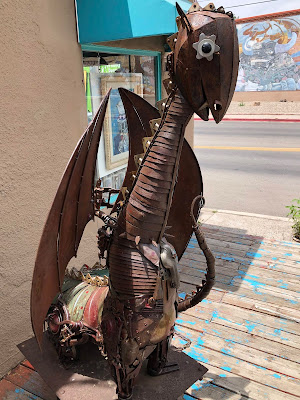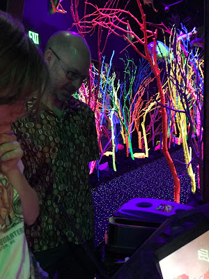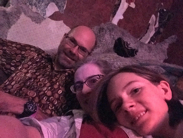 The main indoor activity -- and something you should check out if you find yourself in Santa Fe -- is an indoor art installation put together by a collective known as Meow Wolf. Imagine a warehouse full of an immersive interactive puzzle-solving non-linear psychedelic storytelling mystery house. Or just go there if you can. At one point, I accidentally totally freaked another patron out by popping out of the refrigerator (though a wormhole from crazyland back into the main house). We didn't take many pictures because we were too busy playing. Anything you touched seemed to make sound or light, and careful looking would reveal details about the mystery to be solved. And the laser harp was just cool.