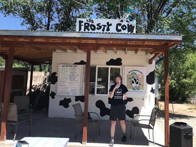Ma September 25, 2019 #vacation #hike #familyWe got a little later start than usual on the way out of Santa Fe, due to having been sidetracked by conversations with the denizens of an excellent bike shop in town. As a result, it felt like time for a snack just as soon as we left the populated areas. That could have been a problem, but we miraculously found this next to a gas station: (mmmm...ice cream)