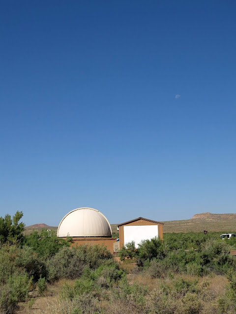Chaco Canyon is designated as one of the International Dark Sky Parks, where there is almost no light pollution to diminish the stargazing experience. On summer weeknights, they open up the telescope in their little observatory, as well as setting up several more telescopes outside so that people could look at cool things like Saturn's moons, variously shaped nebulae, and the like. Given that we were there at the summer solstice, darkness arrived late.