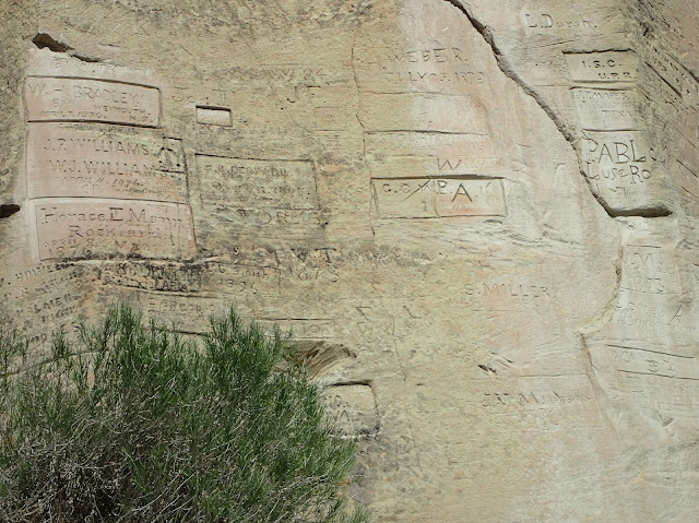 As we followed the trail around the rock's base, the origin of the name "Inscription Rock" rapidly became apparent.