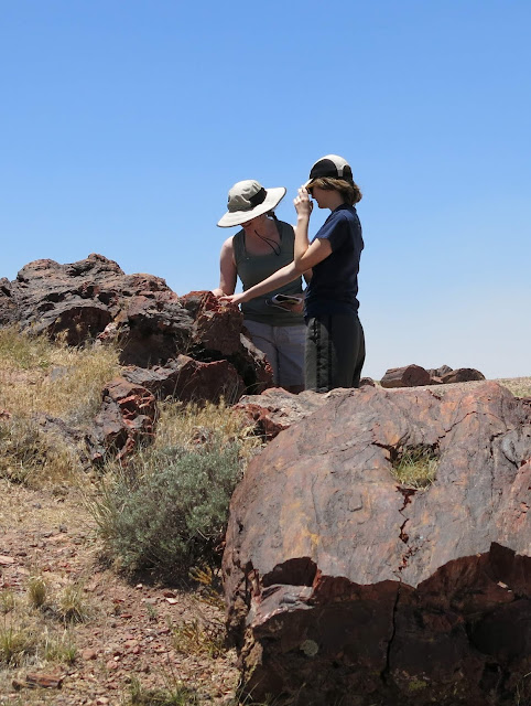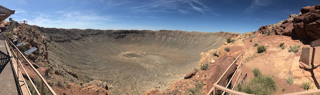 I noted that while this impact crater is very similar in size laterally to the volcanic Hole-in-the-Ground crater we saw a few years back in OR, it is much deeper. We also had a convenient vantage point from which to take a panoramic photo.