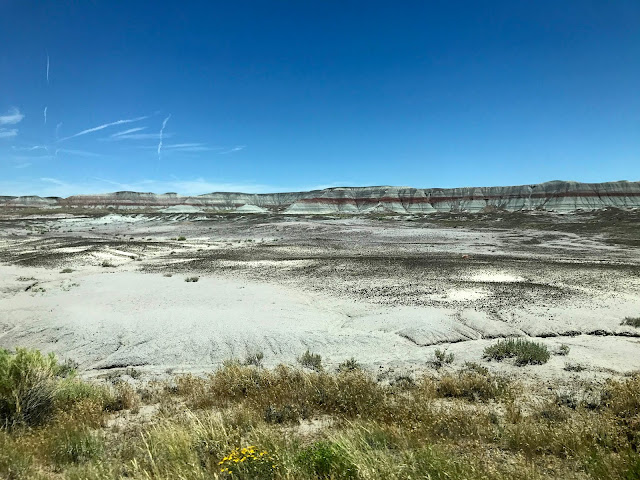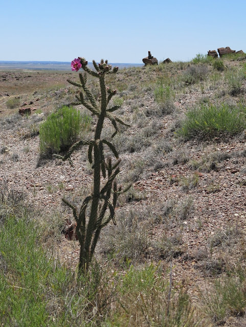For all that the landscape could be considered quite stark, there actually was quite a bit of color, especially as one headed out towards the Painted Desert. If it weren't so hot, we might have taken a longer hike here; as it was, we had a late lunch in the lodge and continued on to our New Mexico campsite for the night.