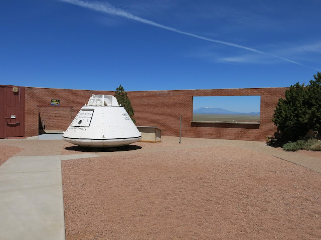 Chad admired the Apollo test capsule in the front courtyard. And yes, the mountain you can see through the window in the wall is Humphreys Peak, back by Flagstaff.
