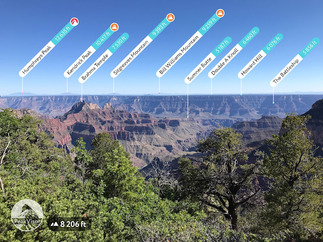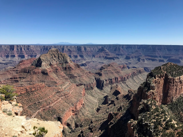 We got a clear view of the mountains to the south of the Grand Canyon. The peak on the left is Humphrey's Peak, which we saw back in Flagstaff.