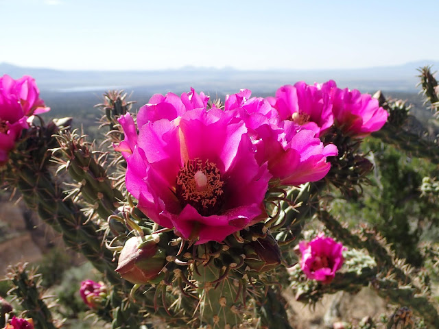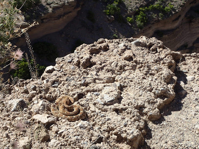 There were quite a few people staring at the ground on the edge of the precipice, discussing whether or not the cute little snakey was a rattlesnake or not. It was; I suggested they not mess with his morning nap. He looks like a contented snakey in the sun.