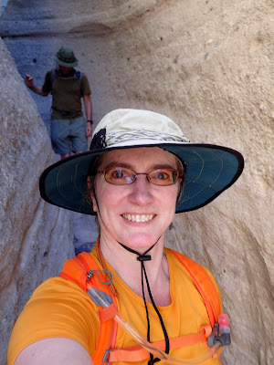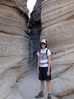 One of the reasons this park is popular is that there is a very easily-accessible scenic little slot canyon section on the trail. Kiddo liked this a lot.