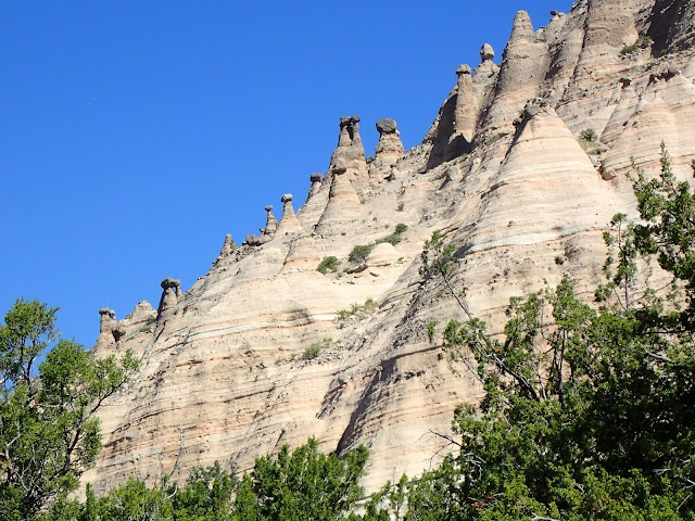 Man, I love national monuments. In this case, the appeal is interesting rock formations. The area is a melange of volcanic tuff, ash, pumice, and pyroclastic flow deposits. Some of these layers are tougher than others, forming resistant caps that protect softer material underneath, leading to the formation of funny hoodoos. To top it all off, there is a short, easy slot canyon that one can walk through too.