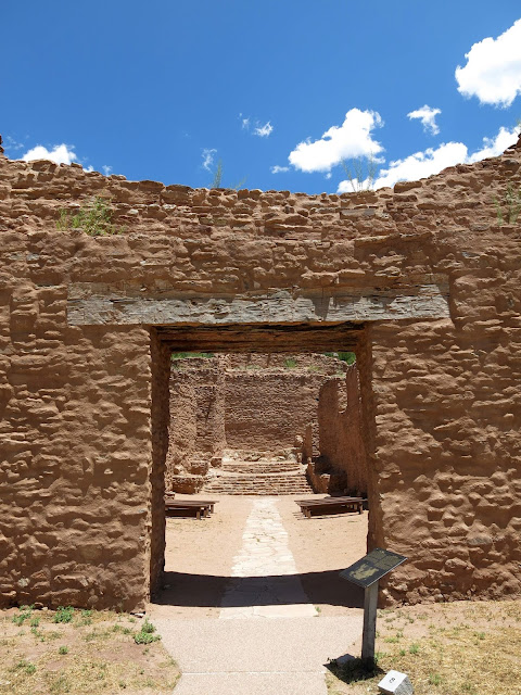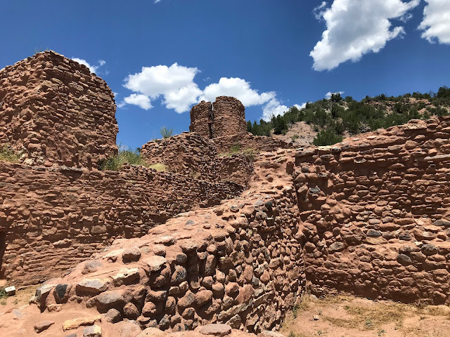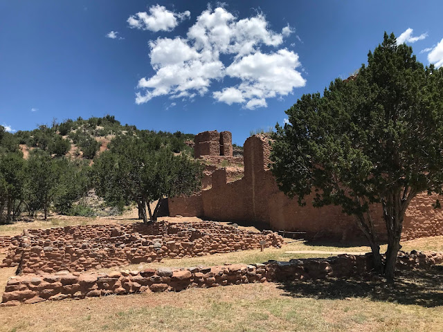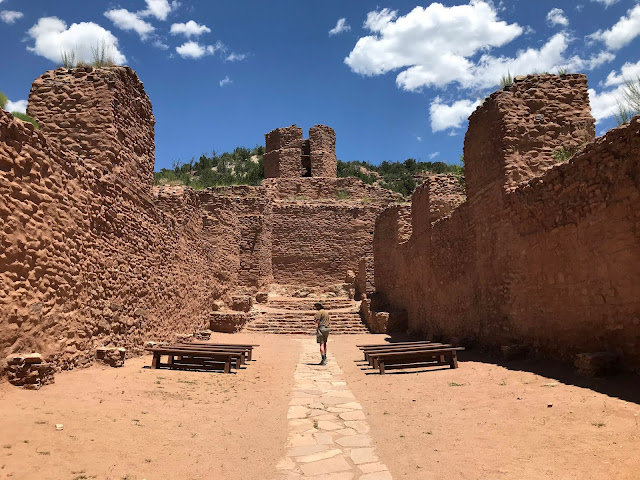 On a whim, we stopped when we saw a sign for the Jemez historic site. This turned out to be an excellent stop, at the site of Gisewa, an ancestral village of the present Jemez Pueblo. At the site, there are ruins of the old village, a large kiva in good shape, and an old mission church, in addition to a small museum.