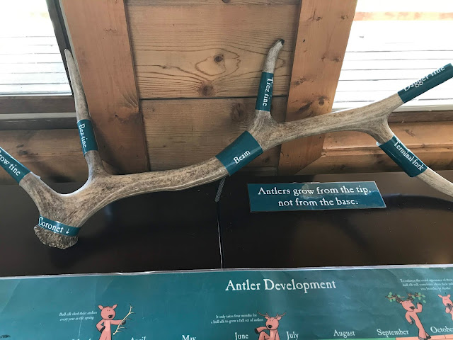 I was amused to note in the visitor's center that antlers have names for each of the specific tines. My mom clearly needs to know about these, given her history of daft arguments about two-and-a-half point deer.