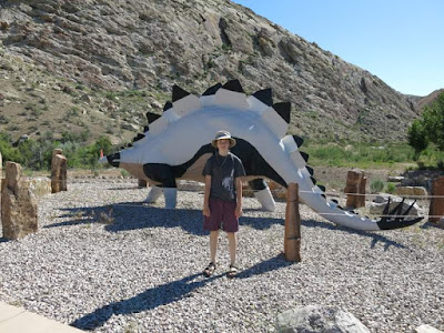 Nimue outside the visitor's center the next day. Apparently it is still ok to pose for a picture as a twelve-year-old if there is a dino sculpture.