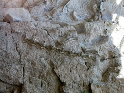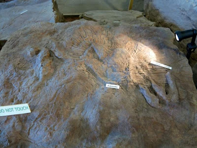 We also spent quite a while studying what looked like three-toed depressions, finally deciding that we couldn't be sure about them, so didn't take any pictures of them. After doing a little bit of research at home, I'm pretty sure we did indeed see the three-toed theropod prints. At the end of the day, it is clear that you need a highly trained eye to be sure than your imagination is not getting the best of you!