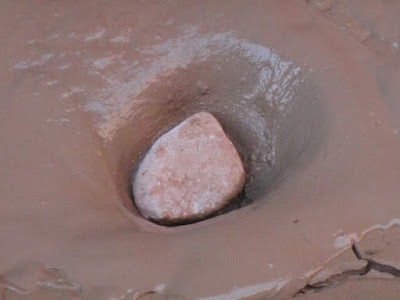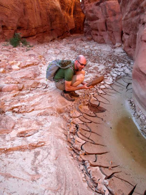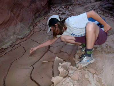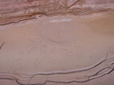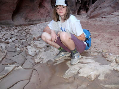 Best of all, the mud in this particular canyon on this particular day (Buckskin Gulch, near the confluence with Wire Pass, at the end of June) exhibited a range of viscosity that was just amusing when impacted with projectiles. Crazy clay impact craters are fun!