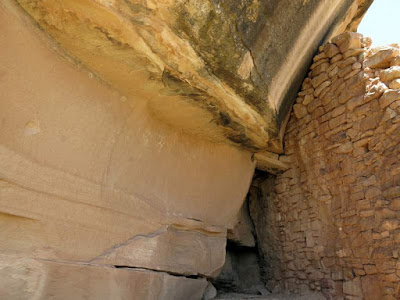 The pictographs, being painted on, usually survive better in places where they are relatively protected from the elements, so we found ourselves peering under every likely overhang. These white hands at Canyon Pintado are pretty easy to spot,