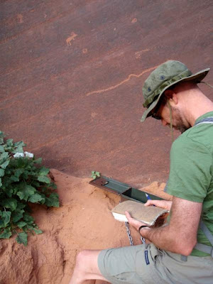 Chad, with the petroglyph log book at the confluence of Wire Pass and Buckskin Gulch. There must have been good hunting here, given the number of animal petroglyphs!